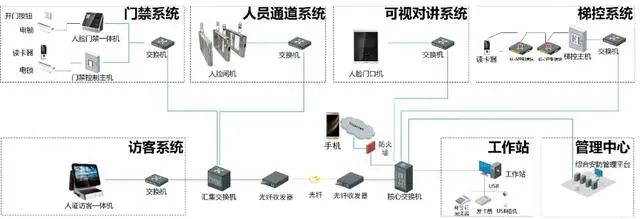 系统设计过程中充分考虑了访客、人员通道、门禁、可视对讲、梯控等子系统的信息共享要求,对各子系统进行结构化和标准化设计,通过综合安防管理平台将其整合成一个有机的整体。