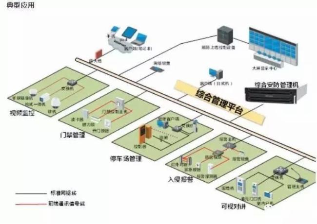 整合视频监控、入侵报警、门禁、可视对讲、停车场、巡查子系统;