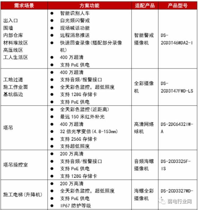 适用于不同施工阶段的建筑工地场景监控 。针对车辆/人员出入口、塔吊、围墙边界、施工区、办工区、工人生活区、材料存放区等重点安防区域监控而设计。