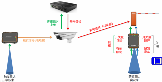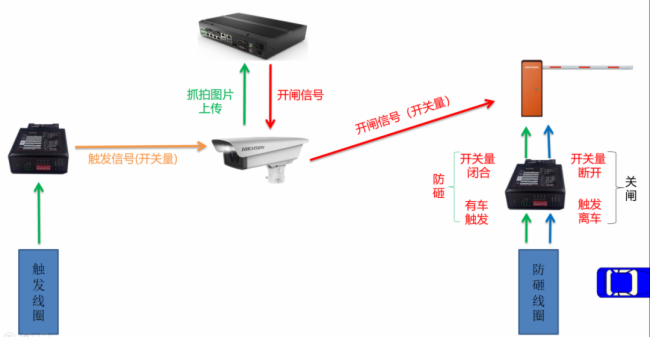 平台控制对应开闸信号由平台发送;相机控制由相机根据车辆信息管理自己判断开闸