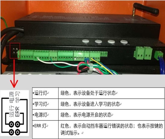 ④使用需要学习的遥控器对着道闸控制器按多次遥控按键使学习指示灯熄灭,表示学习完成