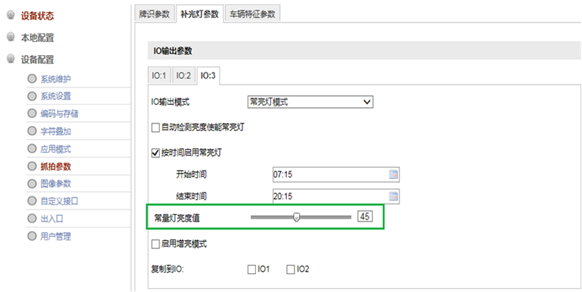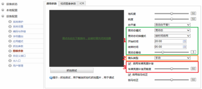 夜间如果车灯过亮导致图像过爆,可按照时间开启宽动态抑制车灯