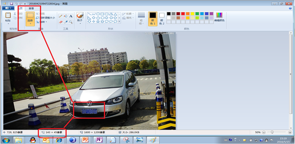 车牌像素点可在抓拍原图通过画图工具打开查看,具体如右图,亦可在实时收图处测量