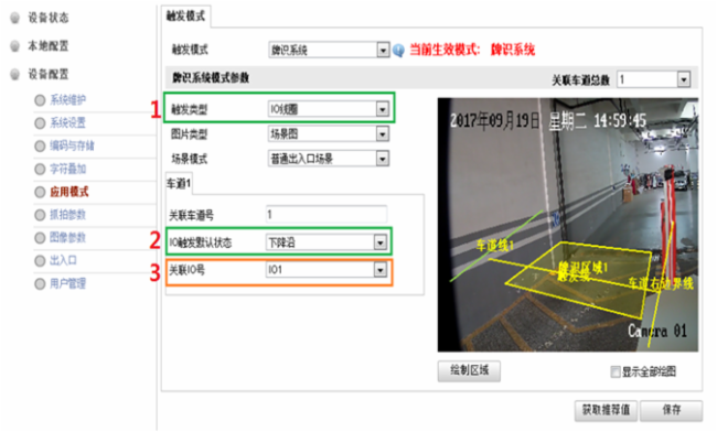 调试时将车辆停在触发位置(触发线圈起始位置,视频触发一般将车停在离相机4米位置)