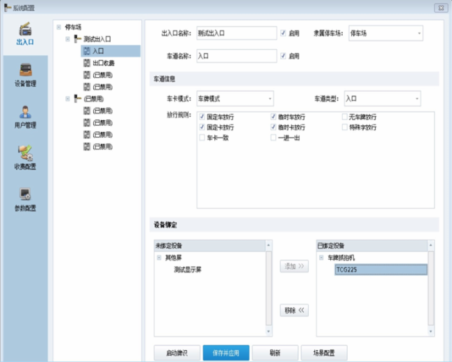 设备绑定:添加的设备必须绑定到相应车道才能使用